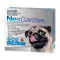 Nexgard is a tasty beef flavoured chew that protects dogs from fleas and ticks for a month.Nexgard also treats and controls demodectic mange, sarcoptic mange and ear mite infestations. Dogs can usually pick up ticks when moving through areas of long grass or scrub. When a tick latches on, they release a deadly toxin which can result in death. Suitable for dogs weighing 4.1-10kgs