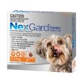Nexgard is a tasty beef flavoured chew that protects dogs from fleas and ticks for a month.Nexgard also treats and controls demodectic mange, sarcoptic mange and ear mite infestations. Dogs can usually pick up ticks when moving through areas of long grass or scrub. When a tick latches on, they release a deadly toxin which can result in death. Suitable for dogs weighing 2-4kgs