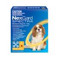 Nexgard Spectra is a parasite prevention product which protects your dogs from fleas, ticks, intestinal worms and heartworm for a month. Nexgard Spectra protects against fleas and ticks but has the added benefit of protecting against roundworms, hookworms, whipworm, heartworm and flea tapeworm. This comes in a beef flavoured chew. Spectra also treats and controls demodectic mange, sarcoptic mange and ear mite infestations. Suitable for dogs weighing 3.6-7.5kg
